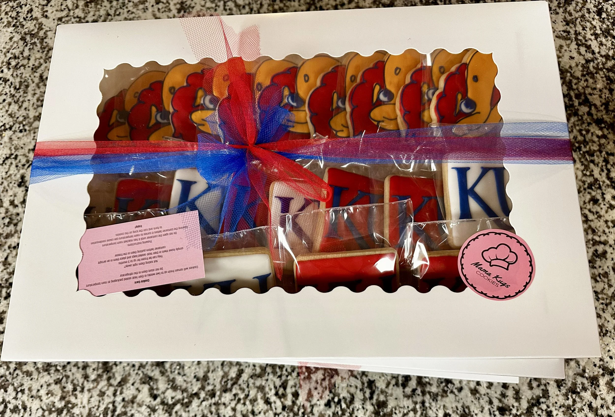 Welcome Back/Tailgating Decorated Dozens $45.00 Custom Decorated Cookies $45.00 Printed Corporate Logo Cookies $45.00 Monthly DIY Kit - 12 Cookies $30.00 Monthly DIY Kit - 6 Cookies $20.00 Individual DIY Cookie Kits $6.00 Cookie Cards $6.00 September Hello Fall! Cookie Decorating Class $40.00 Sold out McLouth October Halloween Cookie Decorating Class $40.00 October Halloween Cookie Decorating Class in LAWRENCE $45.00 November Thanksgiving Themed Class in McLouth $40.00 November Thanksgiving Themed Class in LAWRENCE $45.00 December Family Fun Christmas Themed Class in McLouth from $45.00 December Family Fun Christmas Themed Class in LAWRENCE from $45.00 December Christmas Themed Class in McLouth $40.00 December Christmas Themed Class in LAWRENCE $45.00